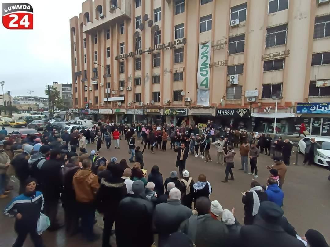 وخرجت صباح اليوم الاثنين مظاهرة شعبية جالت شوارع السويداء انطلاقاً من أمام مؤسسة المياه ووصلت إلى ساحة الكرامة وسط المدينة.
